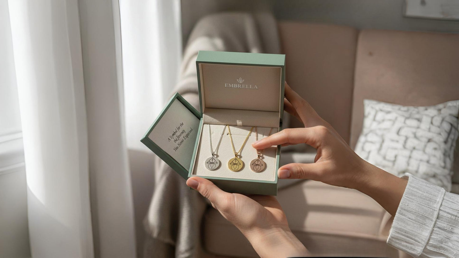 Each Embrella necklace is a quiet expression of strength, resilience and hope: a tribute to the unbreakable bond between mother and child.